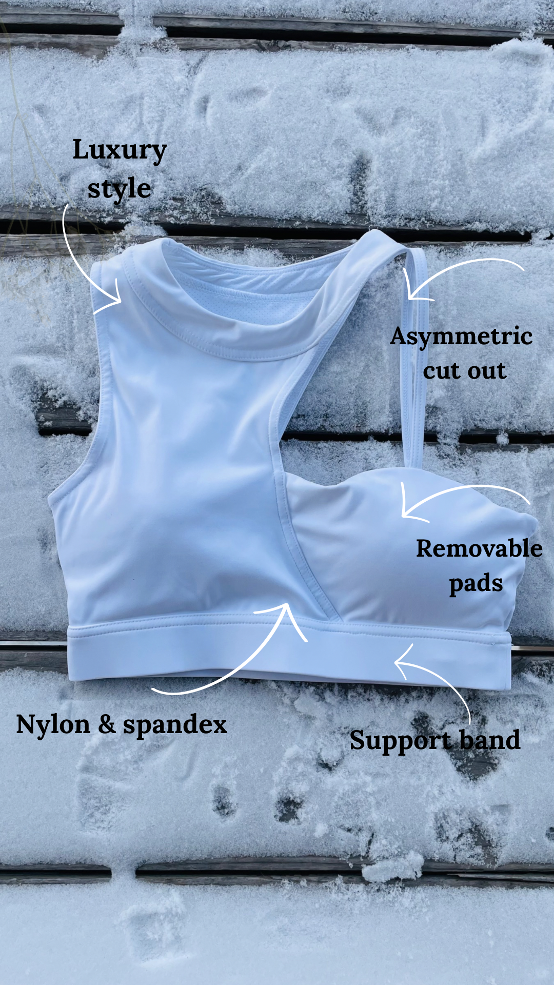 This sexy crop top is designed with a luxury style and one shoulder cut out . The asymmetric style makes you look unique and sophisticate looking. Designed with removable pads and a mesh cover under to provide you more support. The waistband fits and support you upper body.