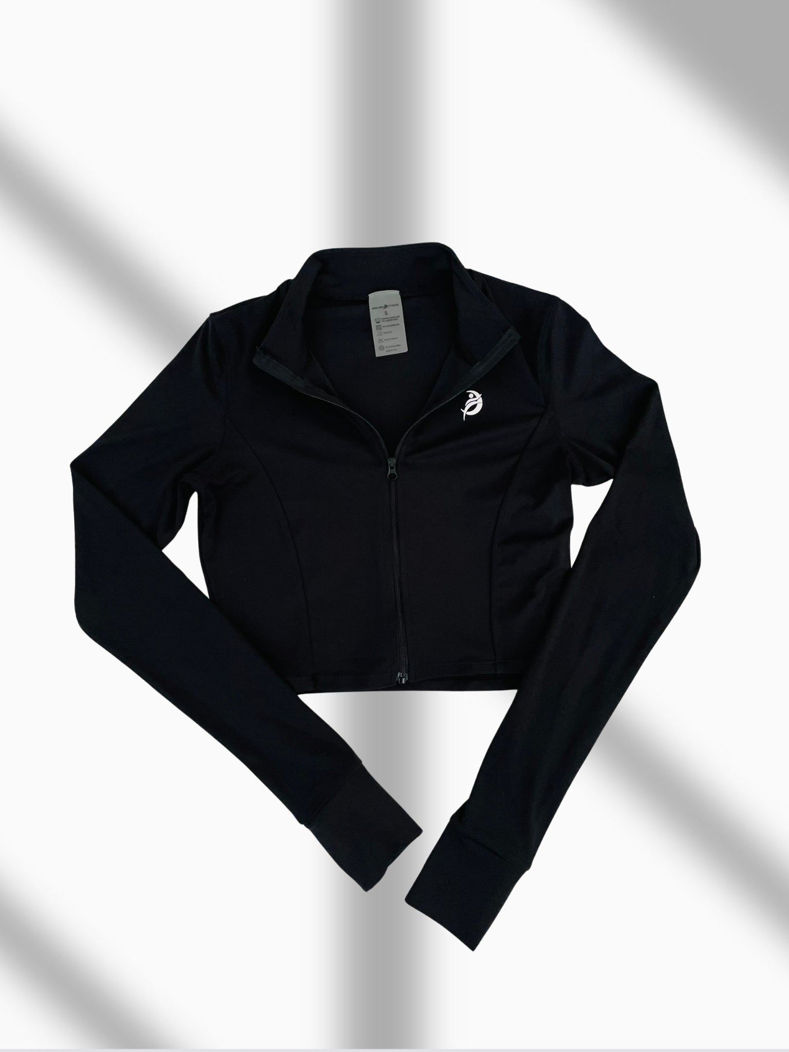 Elevate your style with our Obsidian Black Crop Jacket! Featuring a functional full-size zipper, long sleeves with thumbholes, and a high round neck, this cropped jacket is designed to flatter and accentuate your natural form. The super soft, four-way stretch fabric allows for everyday movement while creating a sleek and aesthetic crop look. Perfect for any outfit style, this jacket is a must-have addition to your wardrobe!