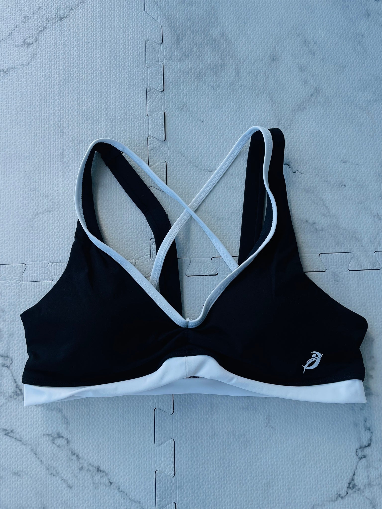 Get ready to turn heads with our trendy Two Toned Black Bra! Not only does it offer medium support and a 4-way stretch for maximum comfort, but the removable padding cup and push up feature will enhance your natural shape. The crossed wide straps provide extra support, while the soft material and heat logo add a touch of luxury. Elevate your style with this must-have bra!